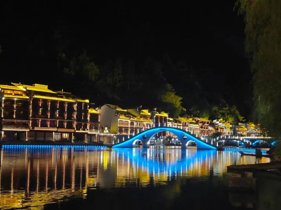 本次由欧锐杰参与的凤凰古城夜景亮化提质升级工程,涉及沱江1.6公里,200多栋沿江民居周边景观亮化。