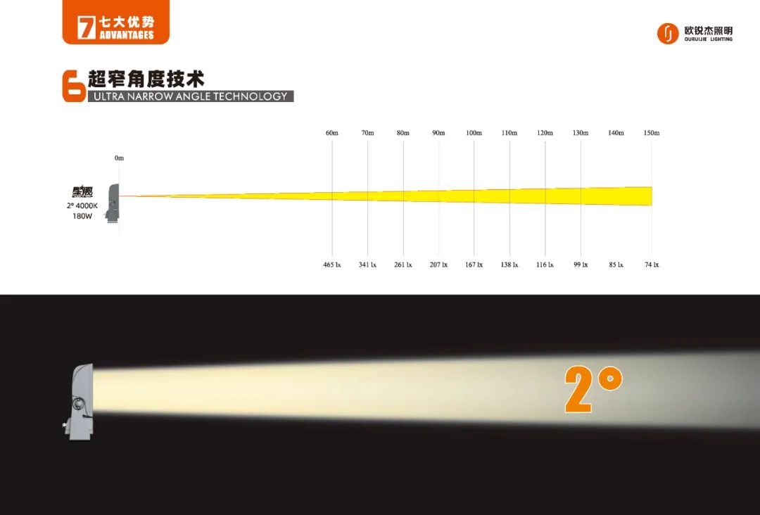 3~120广角域配置,能满足多场景应用,兼顾远距离精准投光和近距离泛光,实现多种照明效果。